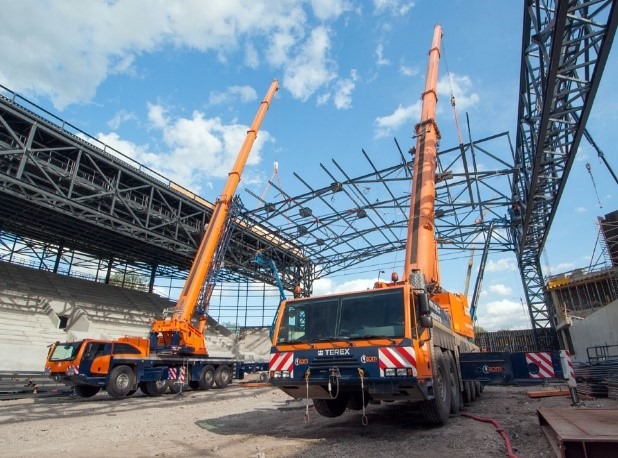 + Khi lắp dựng bằng cần trục cần luôn nhớ gắn thêm 2 tay cầm ở 2 đầu cuối khung thép. Công nhân hướng dẫn vị trí để đặt khung thép sẽ sử dụng các tay cầm này & phải đứng ra vị trí đáp tối thiểu là 5m